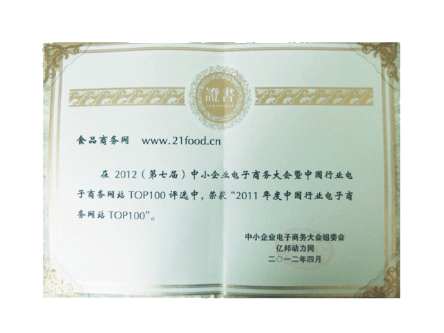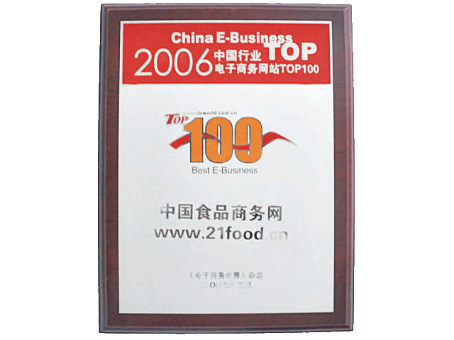 食品商務網蟬聯2005、2006、2007、2008、2009、2010、2011年度電子商務網站百強;榮獲中國行業網站百強。良好聲譽,有口皆碑。