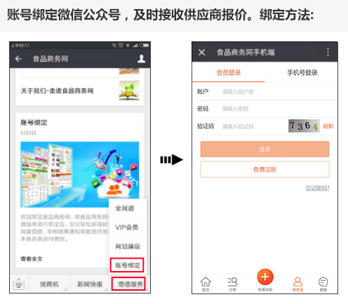 掃碼或添加微信號:cn21food > 點擊增值服務 > 點擊綁定賬號 > 點擊推送 > 輸入賬號密碼