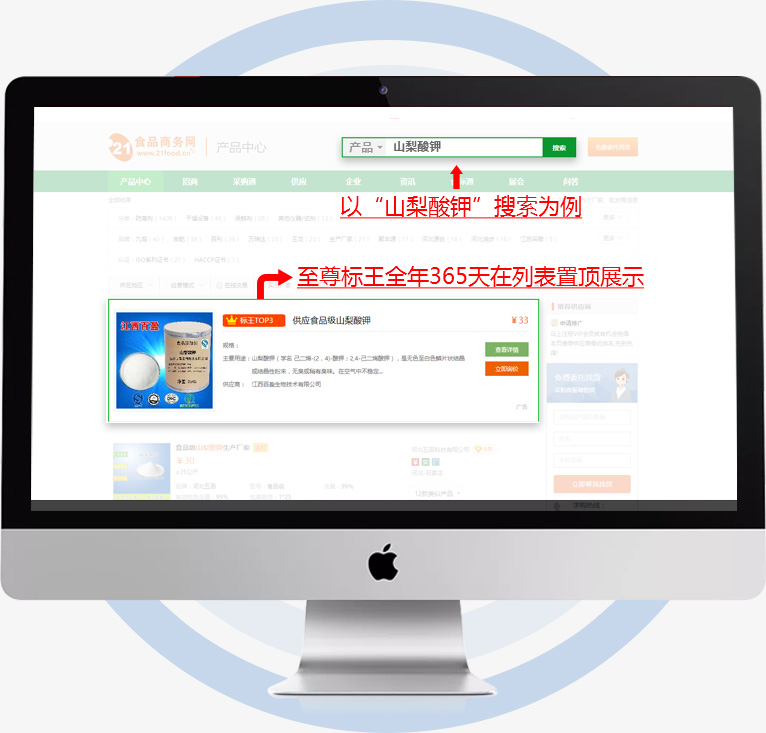 如購買關(guān)鍵詞,用戶通過關(guān)鍵詞搜索時,標(biāo)王產(chǎn)品即置頂出現(xiàn),只能匹配,絕對超值。
